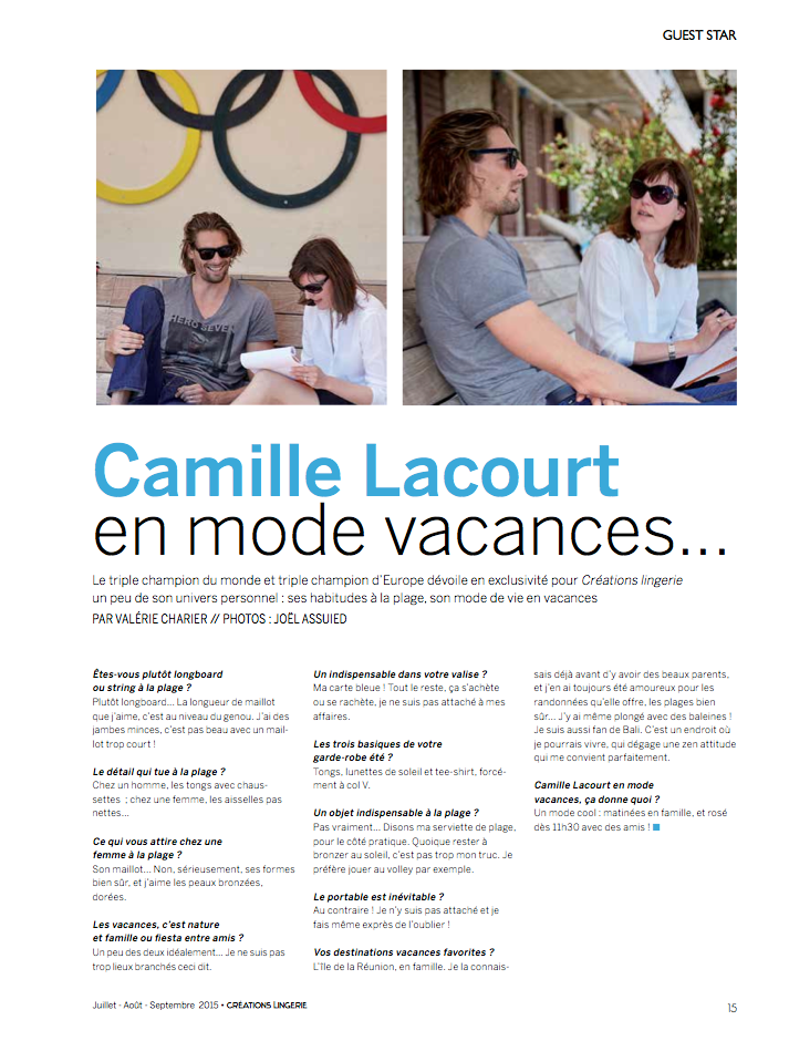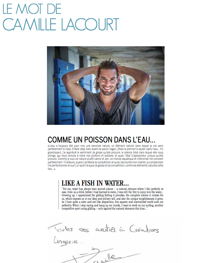 Interview de Camille Lacourt pour le magazine Créations Lingerie